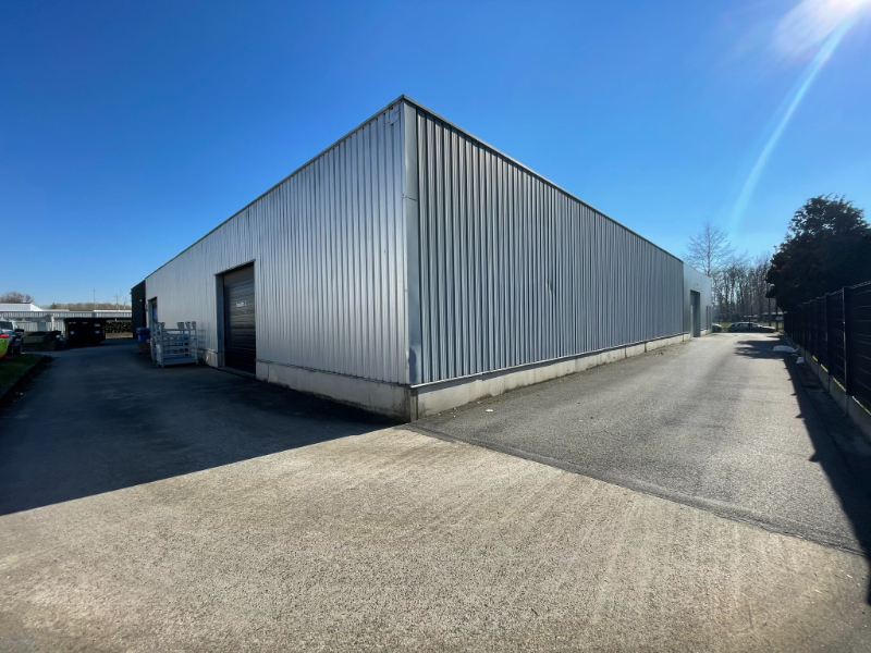 De loods bestaat uit geïsoleerde sandwichpanelen, geïsoleerde steeldeck, 1 automatische sectionaal poort, polybetonvloer, warme luchtblazer op gas, lichtstraat en tl-armaturen.