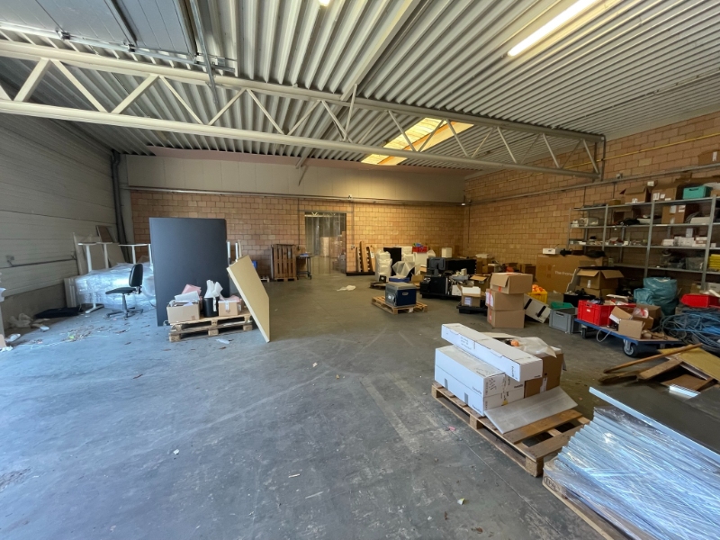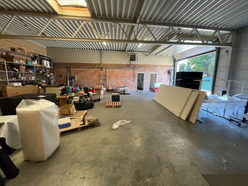 447m² magazijn met 4 parkeerplaatsen en 50m² kantoor / showroom aan straatzijde. Het magazijn kan gebruikt worden als opslagruimte en/of atelierruimte.