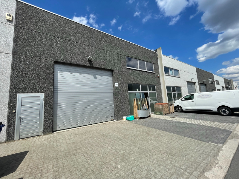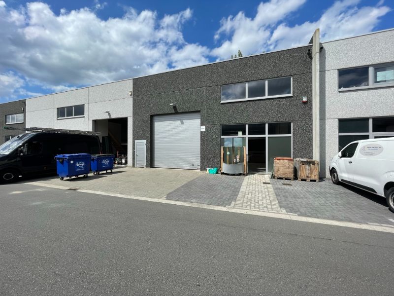 De loods is opgebouwd uit geïsoleerde betonnen panelen en geïsoleerd dak, sectionaalpoort ( 4m x 4,5 m ) , polybetonvloer, waterput, koepel, glaspartij met aparte toegangsdeur Afvoer en drijfkracht (32A) voorzien tot in het gebouw. Binnenhoogte 6m, branddetectie en noodverlichting alsook verlichting in de unit en een alarmsysteem. Maandelijkse gemeenschappelijke kosten bedragen 40€.