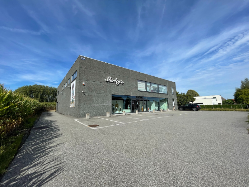 Het winkelpand is een mooi bedrijfsgebouw met veel glaspartijen en heeft 9 parkeerplaatsen voor de deur. De winkel bestaat uit een inkom met balie en 1 grote open ruimte, 2 toiletten, een kantoorruimte van ca 65m² met kitchenette en toilet, een stockageruimte van ca 160m² met automatische sectionale poort + vlot bereikbaar langs de zijkant van het gebouw.