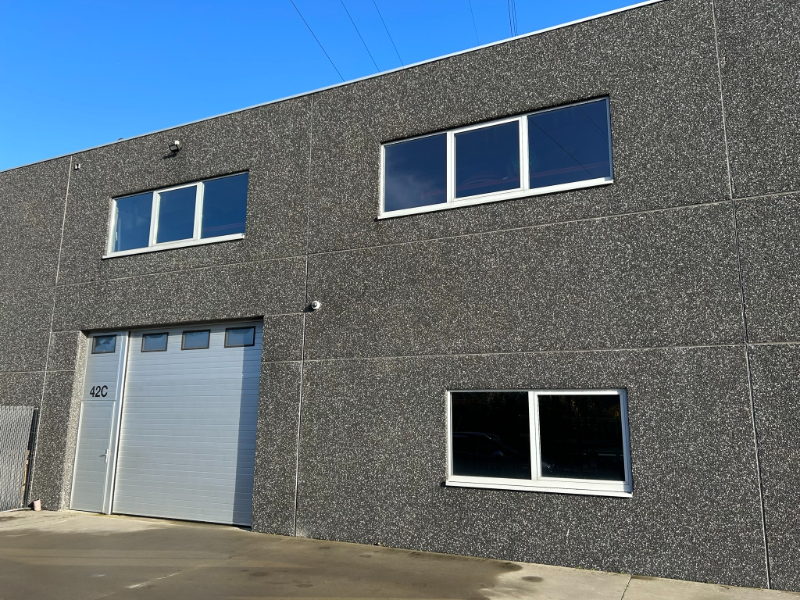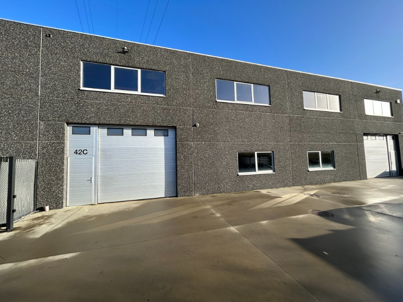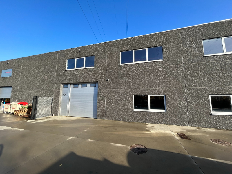 Melle *** VERHUURD *** Uiterst goed gelegen magazijn / opslagruimte van 216m² m² met 144m² mezzanines en 36m² kantoorruimte met 2 parkings