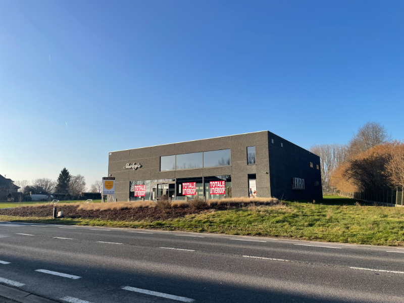 Het winkelpand is een mooi bedrijfsgebouw met veel glaspartijen en heeft 9 parkeerplaatsen voor de deur. De winkel bestaat uit een inkom met balie en 1 grote open ruimte, 2 toiletten, een kantoorruimte van ca 65m² met kitchenette en toilet, een stockageruimte van ca 160m² met automatische sectionale poort + vlot bereikbaar langs de zijkant van het gebouw.