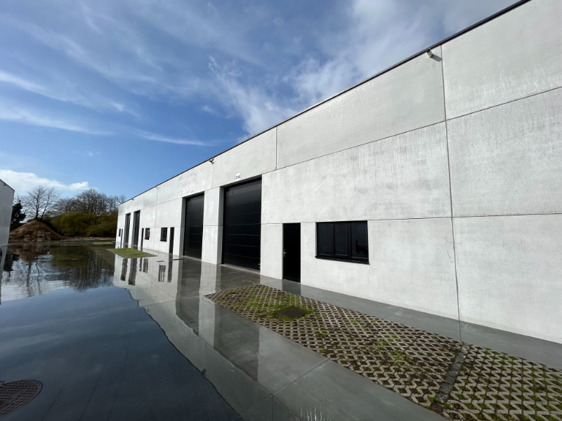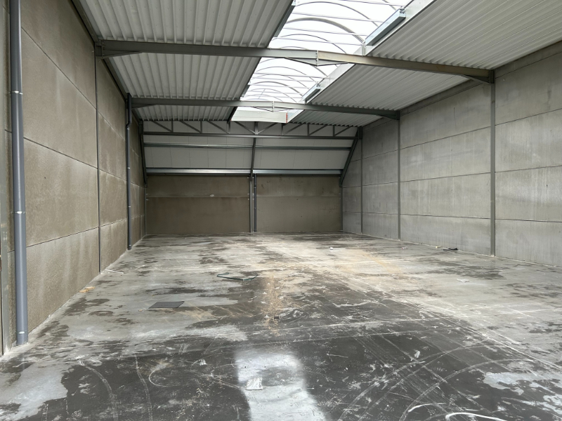 Nieuwe KMO-unit van 312 m² met 2 staanplaatsen te huur gelegen in een KMO-park te Waregem op 6,5 km van op en afrit E17 Waregem. Het magazijn kan gebruikt worden als opslagruimte en/of atelierruimte. De loodsen zijn opgebouwd uit geïsoleerde betonnen panelen en geïsoleerd dak, automatische sectionaalpoort ( 4m x 4 m ), aparte toegangsdeur in aluminium schrijnwerk, polybetonvloer, rookluik. Afvoeren en drijfkracht voorzien tot in het gebouw. Binnenhoogte 6 m, branddetectie en noodverlichting alsook verlichting in de unit. Oplevering maart 2023, huurprijs is excl. btw en excl. gemeenschappelijke en privatieve kosten.