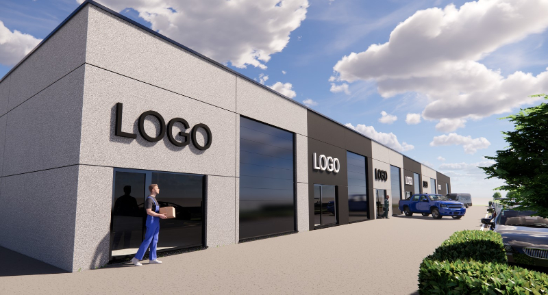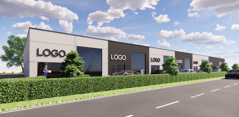 Unit 6 van 488m² magazijn / showroom met 5 parkeerplaatsen te koop in kwalitatief KMO Project Riva te Dentergem.