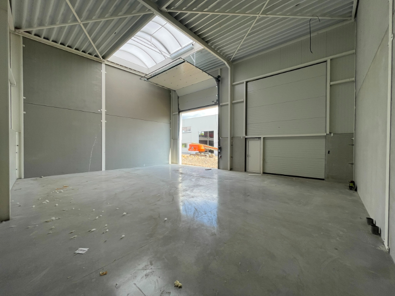 Uiterst goed gelegen magazijn van 124,3m² met 1 parkeerplaats te huur in project Heermeers. De loods kan gebruikt worden als opslag- en/of atelierruimte. Deze site is vlakbij Westbekesluis gelegen, vlot bereikbaar via de R4 en N9, nabij de Gentse Zeehaven. De loodsen worden voorzien in staalstructuur met architectonisch beton en aluminium sandwichpanelen, geïsoleerd steeldeck met lichtstraat, automatische sectionaalpoort 4m(b) x 4,5m (h), polybetonvloer (draagkracht 2,5T/m²) en een vrije hoogte van min. 6m. Technieken: afvoer sanitair, internetaansluiting, KVA 3x400V – 40A.