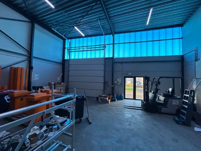 Deze recente loods van 168 m² (unit 9) bevindt zich in het uitstekend bereikbare industriepark Grote Nest, langs het kanaal Gent-Terneuzen.
