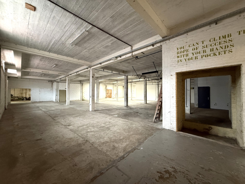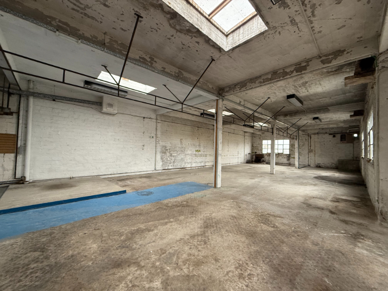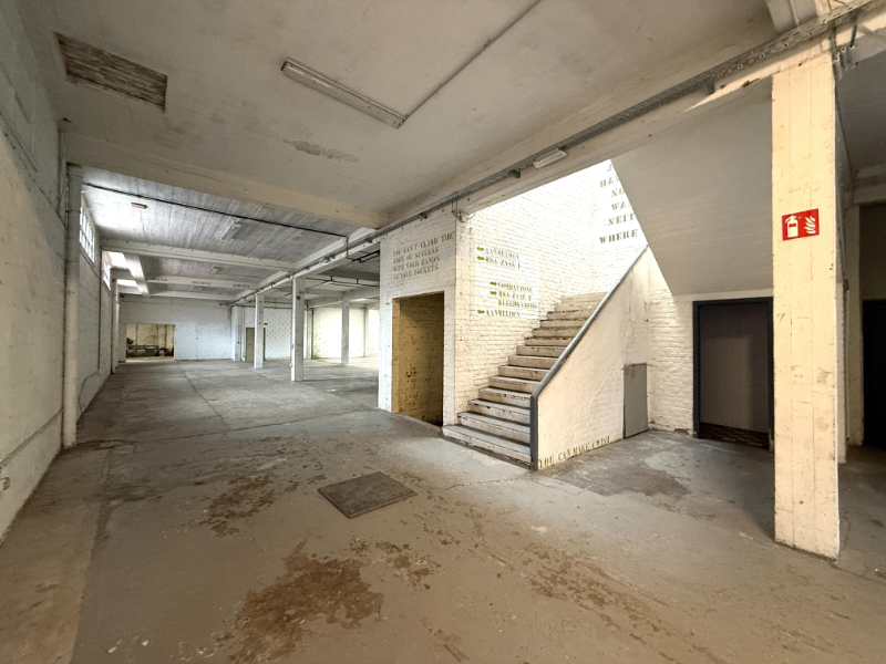 Deze veelzijdige loods, gebouwd in 1954, biedt een gelijkvloerse oppervlakte van 1.210 m² en een eerste verdieping van 612 m².