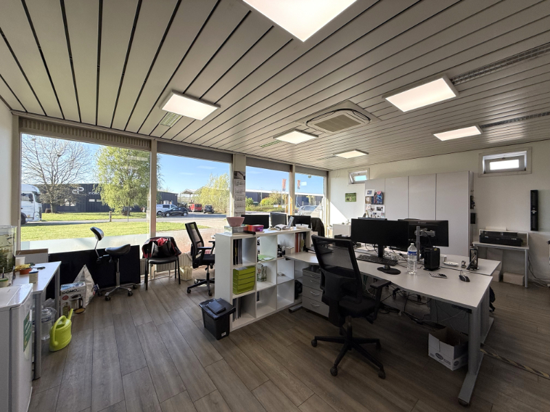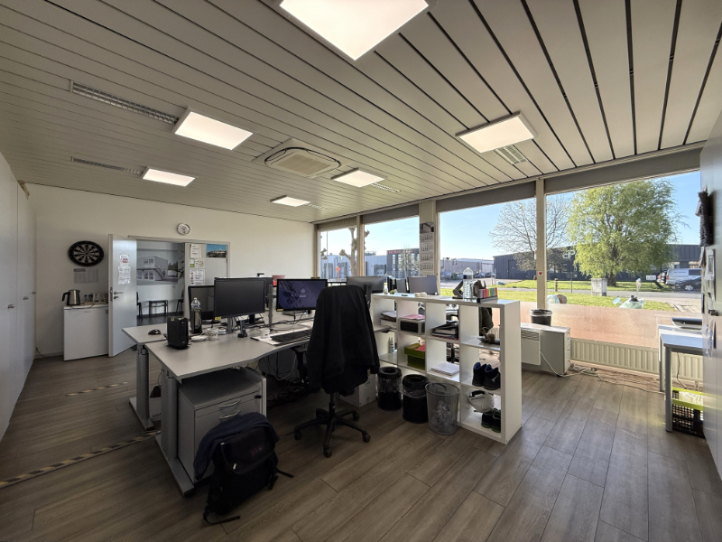 - Kantoorruimte en sociale ruimte: circa 145 m² (gelijkvloers)