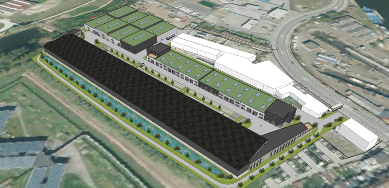 Gelegen op een bedrijventerrein aan de Voorhaven in Gent, nabij de Wondelgemse Meersen.