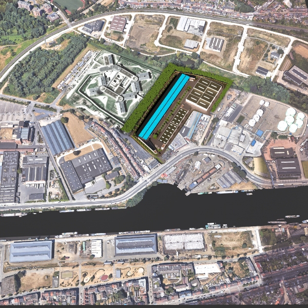 Gelegen op een bedrijventerrein aan de Voorhaven in Gent, nabij de Wondelgemse Meersen.