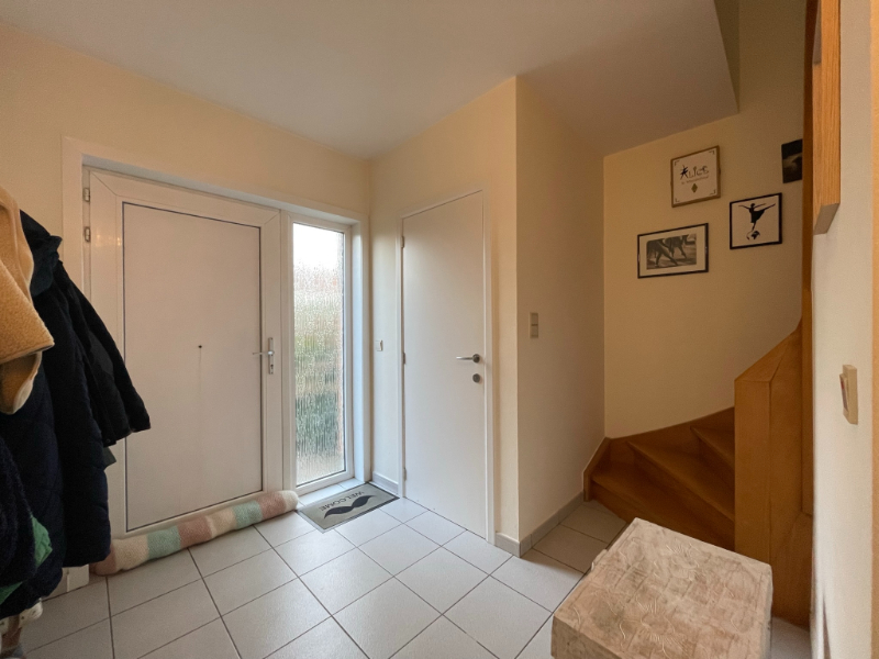 De woning zelf bestaat uit een gelijkvloers met inkomhal en toilet, berging, wasplaats, keuken en lichtrijke woonkamer met zicht op de tuin. Op de eerste verdieping is er een uitgeruste badkamer met toilet, dubbele lavabo en bad (en douche in bad), er zijn 3 slaapkamers waarvan 2 slaapkamers toegang geven op het terras. Via de gang op de eerste verdieping kan je naar een ruime functionele zolder (ca 37m²). Er is een ruime oprit + een aangename zuidwest gerichte tuin.