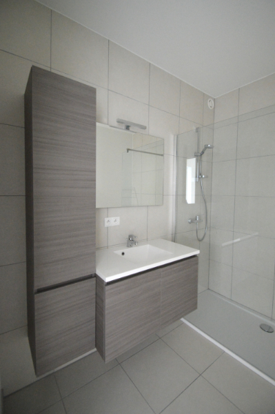 Het appartement omvat een inkomhal met gastentoilet, een lichtrijke leefruimte met open, volledig ingerichte keuken (keramische kookplaat, dampkap, koelkast, combi-oven en vaatwasser), twee volwaardige slaapkamers en een moderne douchekamer met inloopdouche en lavabomeubel. Verder is er een praktische berging en een aangenaam terras.