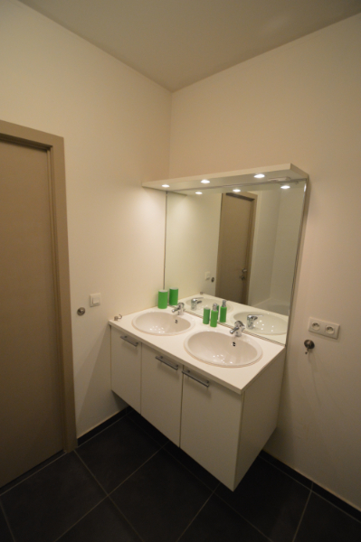 Het appartement omvat een lichtrijke leefruimte, een ingerichte keuken, een badkamer met dubbel lavabomeubel, bad/douche en toilet, twee comfortabele slaapkamers en een praktische berging.