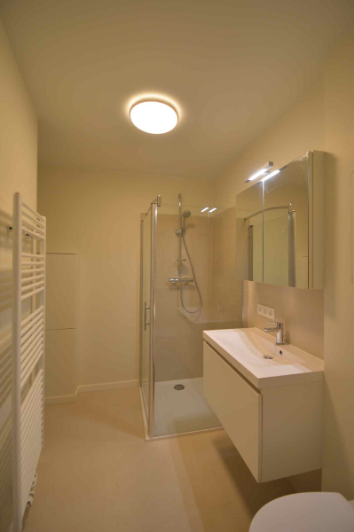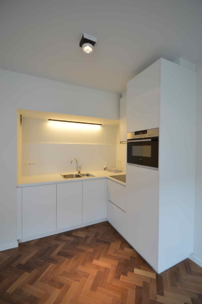 De studio is hoogwaardig afgewerkt – voorzien van parket (visgraat), rolgordijnen, verlichting ... en volledig geschilderd.